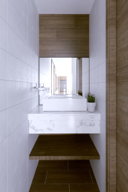 BAÑO CON SANITARIOS MARCA FERRUM, ACCESORIOS ESPEJO Y VANITORY